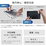 折りたたんでPCに貼り付けるタイプで、閉じればかなり薄いので着けたままノートPCを持ち運ぶことができます。